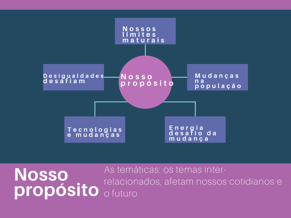 Vivemos a crise das transformações aceleradas, temos que REAPRENDER A NOS RELACIONAR, USAR OS CONHECIMENTOS PARA DIMINUIR AS DESIGUALDADES E, SABER USAR E COMPARTILHAR A NATUREZA. Não temos alternativas, a não ser compreender e agirmos para mudarmos e vivemos bem.
