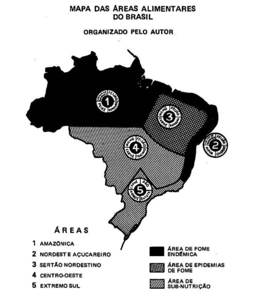 21. Para nós do Brasil, para a América Latina e para o próprio mundo, foi Josué de Castro (1908-1973), que desvendou a verdade oculta, com o lançamento em 1946, do seu livro GEOGRAFIA DA FOME. Neste livro, temos a primeira sistematização nacional do tamanho do problema e, a sua síntese cartográfica aqui apresentamos: