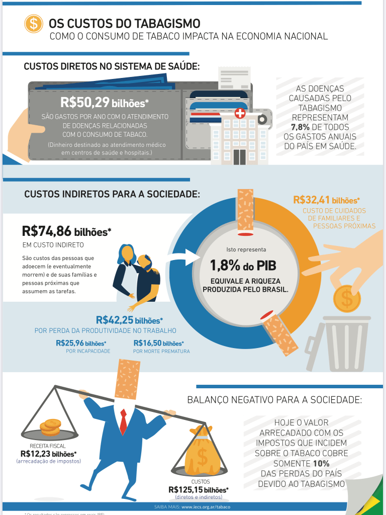33. Temos que recordar o tabaco, uma droga que todos sabemos prejudicial à saúde individual, grupal e que onera grandes gastos em saúde. A OMS estima que em 2016 tivemos 7,6 milhões de mortes por doenças relacionadas com o tabagismo. Destas, 5,1 milhões eram homens e 2 milhões mulheres. Isto onerou em aproximadamente US$2 trilhões os gastos mundiais com saúde.
