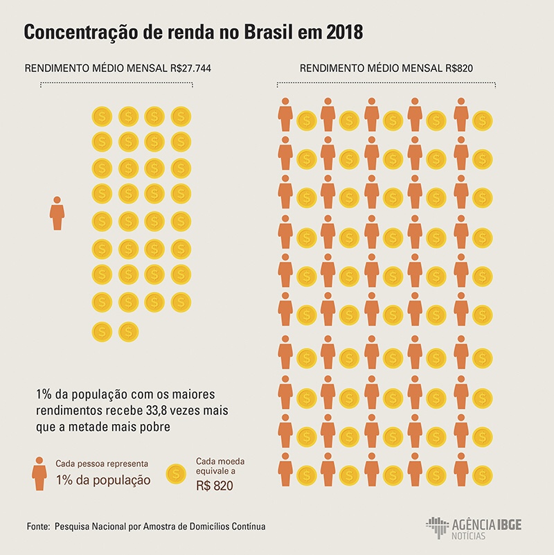 31. Ainda em 2019, antes da pandemia, os levantamentos do IBGE indicavam que os 10% da população mais rica, possuia…43% da renda nacional e, que os 10% mais pobres… apenas 0,8%. Recentemente, em cruzamentos com os dados do fisco, ficou claro que os mais ricos podem chegar a ter mais, talvez 50% da renda nacional. Pois facilidades fiscais, de manipulação de declarações, de remessas para o exterior, recursos não declarados, sub-notificações, etc… tornam isto possível.